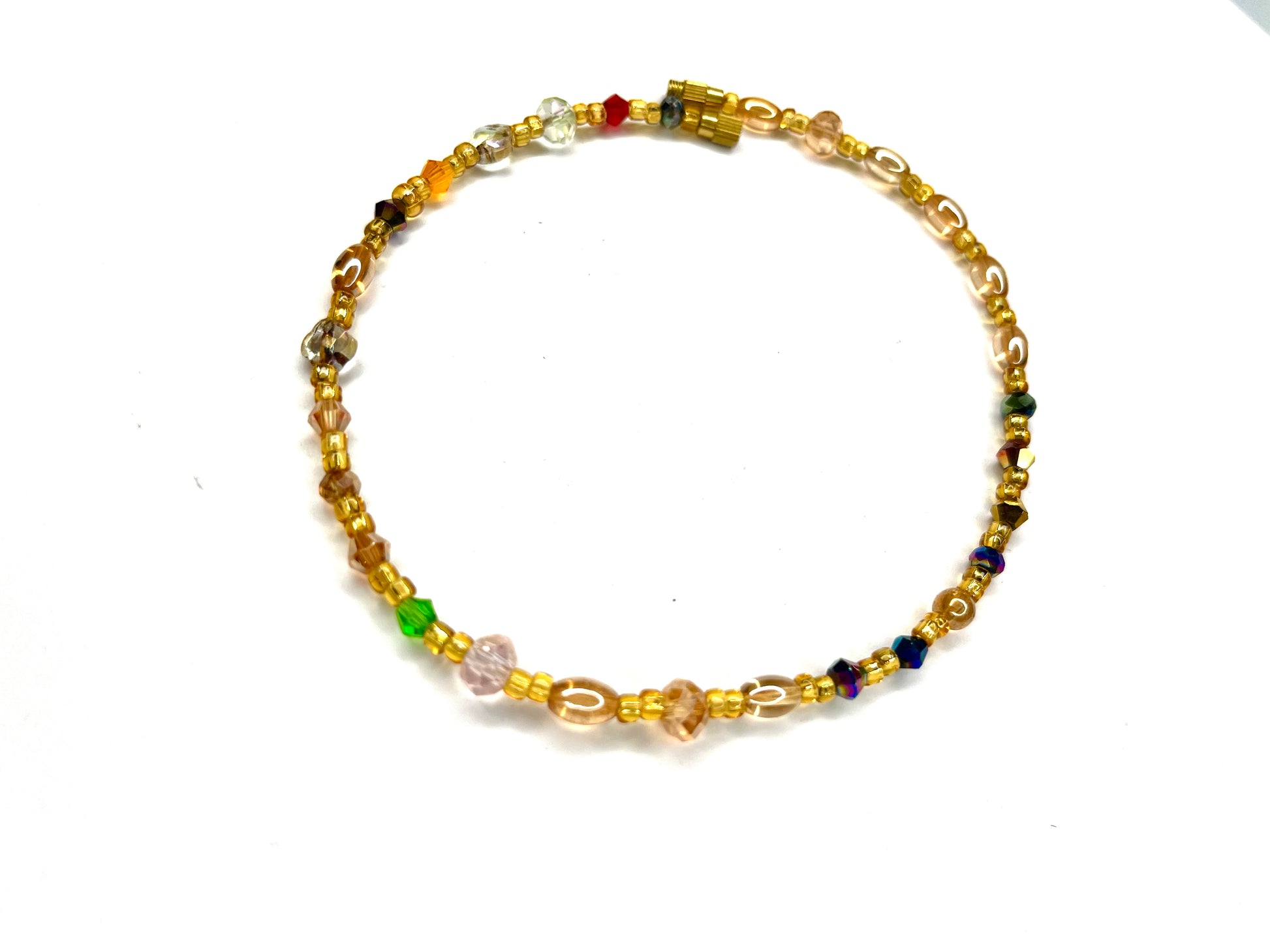 This single beaded anklet is adorned with glass seed and crystal beads, and is sure to add a touch of glamour to your everyday look.