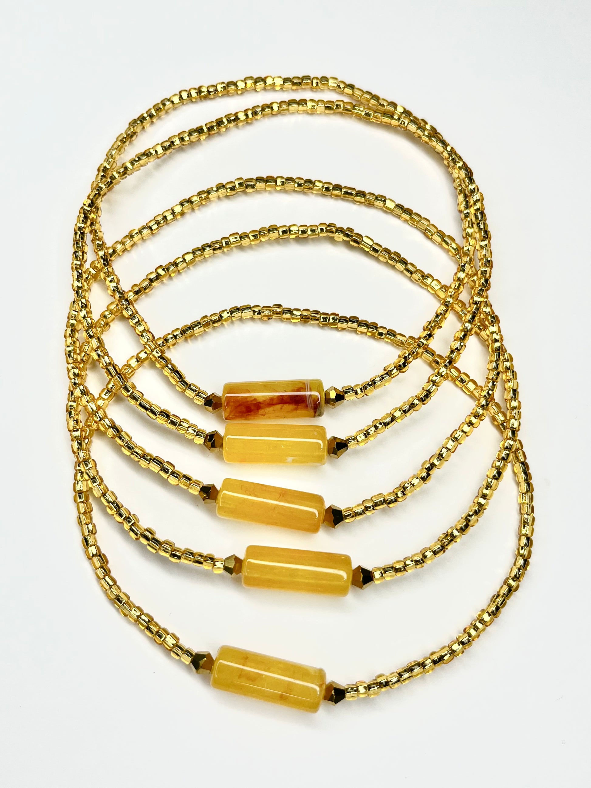 Indulge in a touch of luxury with our amber gold anklet. Made with high-quality materials, this piece features stunning amber-colored beads that complement any outfit. Perfect for adding a touch of warmth and elegance to your look, this anklet is a must-have accessory for any jewelry collection.
