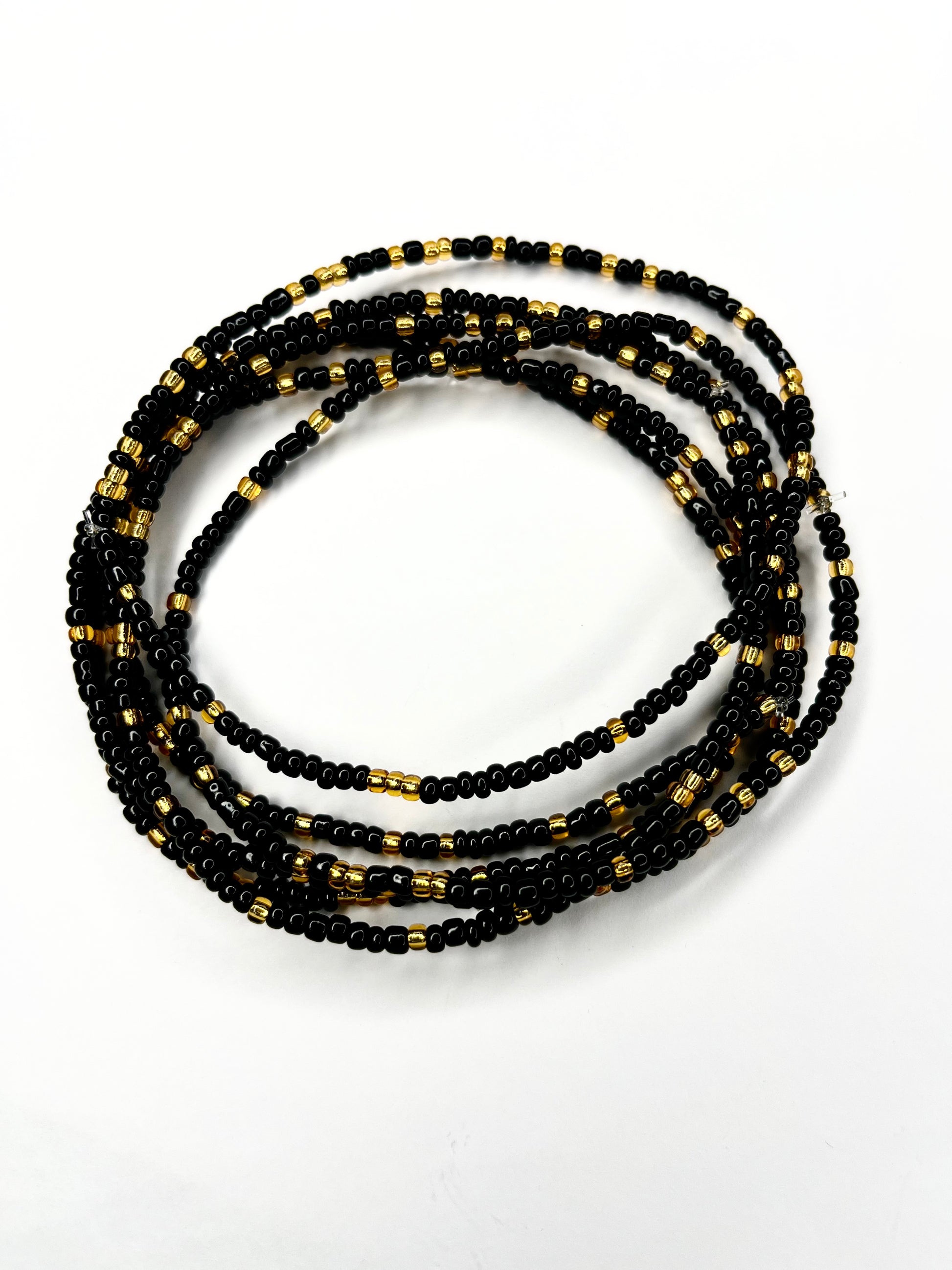 Adorned with colorful symbols, this anklet is a perfect accessory to add some personality to your outfit. The sleek black beads complement the shining gold beads, while the symbols add a pop of vibrant color. Wear it on its own or pair it with other aNile’s for a stacked look. Stretchy and comfortable to wear, this anklet will fit most ankle sizes. Add some charm to your day with this exquisite black and gold anklet!