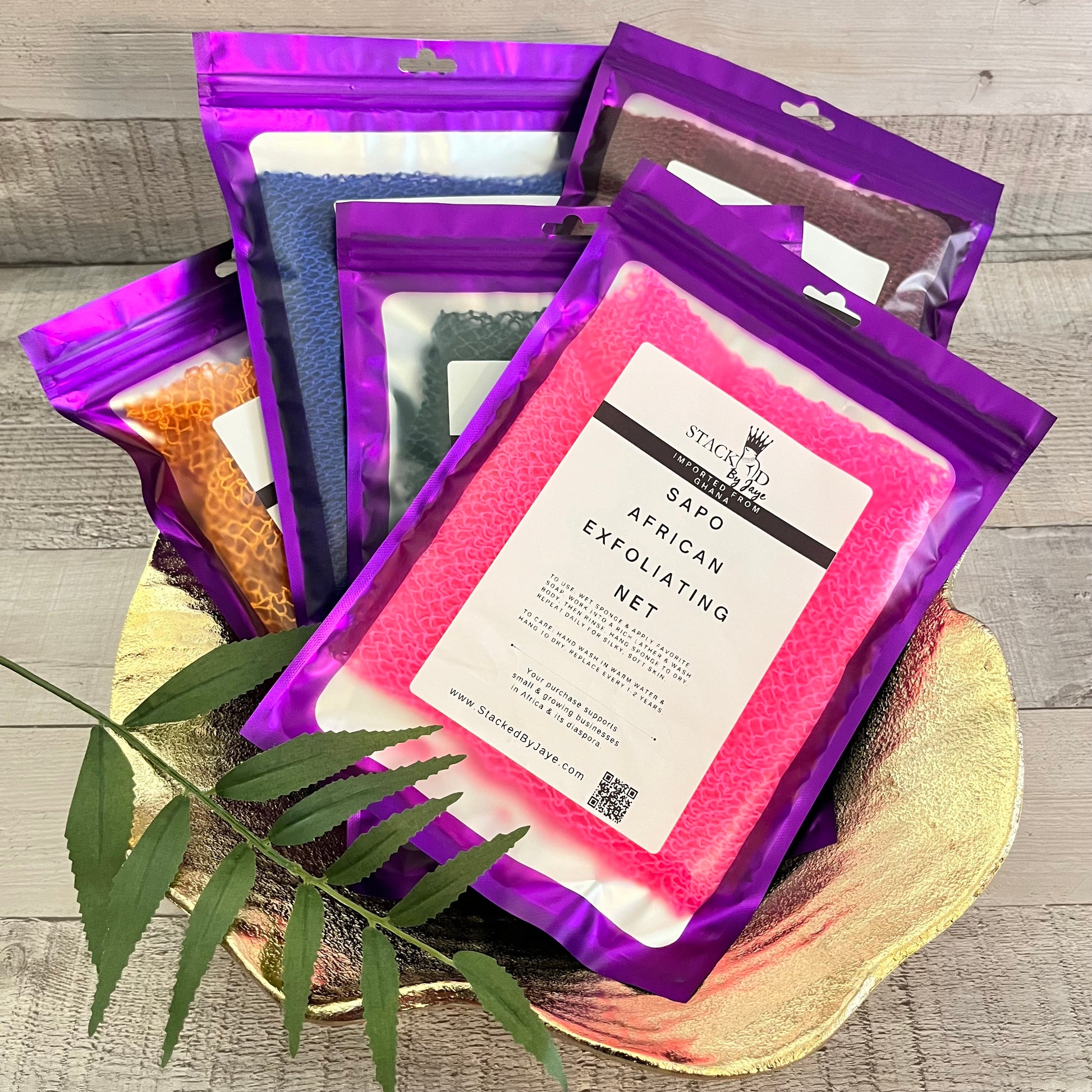 Experience the benefits of African skincare with our Sapo African exfoliating sponge. This high-quality sponge is made of durable nylon, imported from Ghana, West Africa, and is the perfect addition to your daily skincare routine.